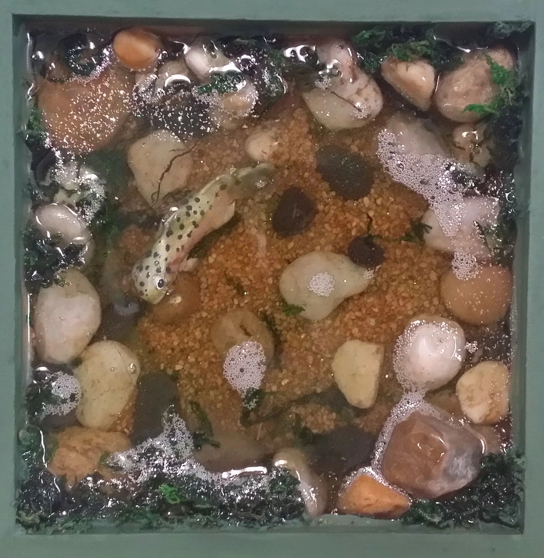I'm excited and honored to have my "Idaho River" resin art chosen by the Eagle Arts Commission to be included in this special art show happening this August at the Eagle, Idaho City Hall. Stop by the Eagle City Hall and vote for my tribute our beautiful Idaho rivers! The piece features a tiny sculpted rainbow trout swimming amidst the rocks and river plants. It's definitely art that's small measuring 5.75" x 5.75"